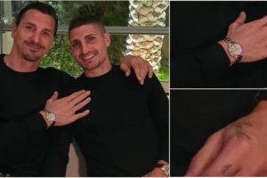 其中伊布戴的是白金劳力士Daytona,表盘镶嵌钻石,表圈周围有36颗彩虹色梯形蓝宝石,价格约90万美元。而维拉蒂戴的是百达翡丽“日内瓦湖”,价格约120万美元。