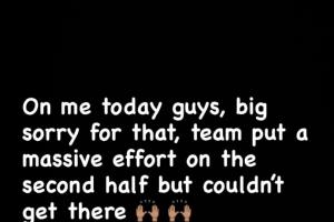 “伙计们,今天怪我,太对不起了。球队下半场付出了巨大的努力却没能做到。”