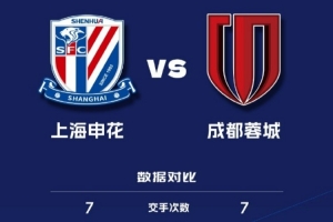 中超联赛官方晒出两队的交手记录,双方历史共对阵7次,成都蓉城4胜2平1负占据明显上风。