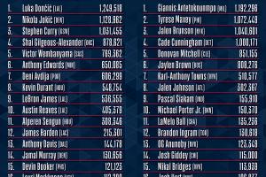 体育资讯12月30日讯 NBA全明星球迷投票首期:东契奇领跑全联盟,字母哥东部第一,詹姆斯西部第九