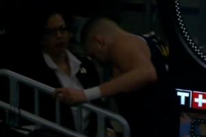 GIF-约老师疼得后滚翻 一瘸一拐扶着护栏走回更衣室