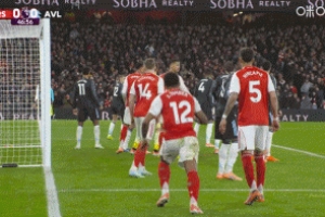 比赛第47分钟,阿森纳右路角球,大马丁脱手失误,足球接触加布里埃尔后入网!