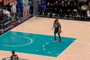 下一篇: 三威胁!恩比德罚球线一个探步虚晃,成功晃开防守人,随后命中招牌中投。
