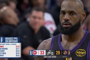 下一篇: 生日夜状态可以!詹姆斯首节2中2拿到5分1板3助
