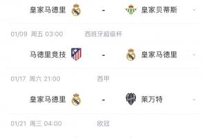 皇马刚结束短暂的两周假期,本周末就将在西甲对阵皇家贝蒂斯。而下周,皇马将前往沙特参加西超杯,他们半决赛的对手是马竞,而另一组半决赛对决是巴萨vs毕巴。