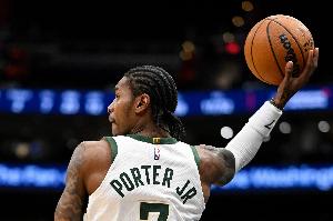 雄鹿球员小凯文·波特上半场状态很出色,突破也是相当灵动犀利,在字母哥休息期间帮助球队咬住比分。