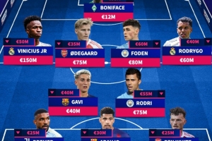 全文摘要:《转会市场》统计了2025年身价下跌最多的阵容,总身价5.97亿欧元。该阵包含维尼修斯、厄德高、福登、罗德里等名将,皇马、曼城、阿森纳、巴萨各有2将入选,主要因伤病、状态下滑或外租导致身价缩水。