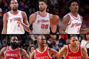 据统计,这是火箭队史第3次三人赛季场均得分18+。