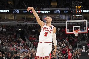 公牛内线武切维奇本场开场后在进攻端不仅效率很高,运动战全部打进,还充当策应点多次助攻队友拿分。