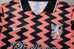 切尔西下赛季复古球衣谍照:珊瑚橙与黑色交织 使用狮纹徽章