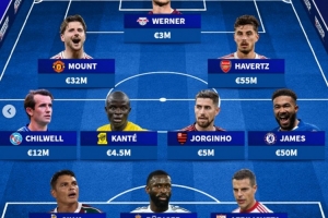 前腰:芒特(曼联,3200万)、 哈弗茨(阿森纳,5500万)