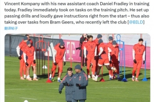 体育资讯1月4日讯 据《图片报》报道,拜仁新任助理教练丹尼尔·弗拉德利今日协助孔帕尼,参与球队训练。