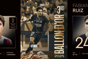 全文摘要:巴黎成为2025年金球奖最大赢家,登贝莱夺冠。其花费仅1.23亿欧元打造的“中场铁三角”功不可没:法比安经验丰富,维蒂尼亚与若昂·内维斯则表现亮眼,三人凭借出色的赛季数据(共17球22助)均入围提名,成为球队上赛季欧冠与法甲双冠的核心功臣。