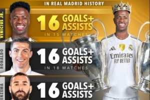 以下为皇马队史决赛参与进球榜(进球+助攻):