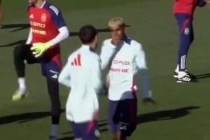全文摘要:巴萨新星亚马尔在国家队训练时,仍向队友奥亚萨瓦尔和苏维门迪极力解释对阵巴列卡诺时获得的点球判罚无误。然而,两位队友均表示不解,用摇头和夸张手势予以回应,认为无需多言。此次争议源于比赛中VAR技术故障,导致主裁判无法亲自回看确认点球。