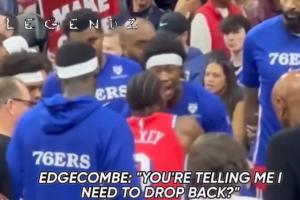 在暂停期间,两人的交流略显紧张,埃奇库姆回复:“我做了。兄弟,你让我做,你是说让我退防吗?”