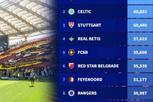 全文摘要:德转盘点了本赛季欧联杯参赛球队主场最大可上座人数,罗马主场以73261人位居榜首,凯尔特人(60832人)和斯图加特(60449人)分列二、三位。前十名还包括贝蒂斯、布拉勒斯特星等球队,展现了欧洲足坛的主场人气。