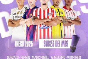 体育资讯1月22日讯 西甲公布了1月联赛最佳U23球员候选5人名单,皇萨竞各1人入围。
