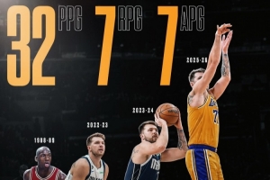 东契奇2022-23赛季,场均32.4分8.6篮板8助攻。