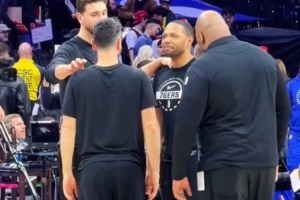 体育资讯1月23日讯 火箭客场挑战76人,赛前球队官方晒出旧将埃里克·戈登与球队老熟人们寒暄的视频。