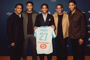 体育资讯1月24日讯 马赛已官宣签下费耶诺德24岁中场昆滕·廷伯,廷伯一家也参加了新援签约仪式。