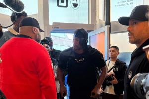 体育资讯01月30日讯 美国网友Guru更新动态,晒出一张勇士球星吉米·巴特勒拄拐公开露面的图片。