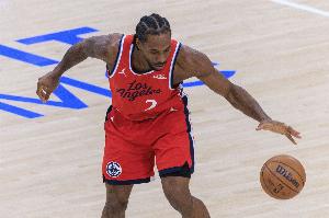 上半场,快船球星伦纳德攻防两端稳定发挥,出场15分钟8投4中,三分3中1、罚球2中1拿到10分3篮板4助攻2抢断,正负值-5。