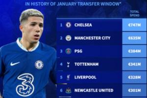 体育资讯02月03日讯 上午6:00,25-26赛季五大联赛冬窗陆陆续续落下了帷幕。德转统计了各支球队自从冬窗设立以来的总支出。