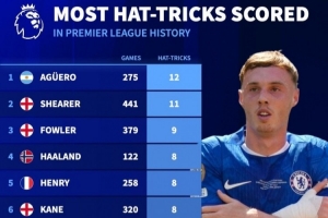 全文摘要:切尔西3-1胜狼队,帕尔默上演帽子戏法,英超戴帽次数增至4次,升至历史第16位。
