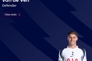 此役范德文为热刺踢满全场,这位中卫当选本场比赛最佳球员。