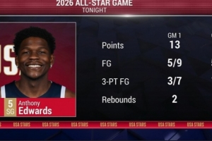 两场比赛,美国新星队球员爱德华兹均有出色发挥,首场比赛9投5中,三分7中3拿到13分2篮板;