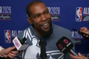 体育资讯2月16日讯 NBA全明星正赛冠军赛,美国星条队21-47不敌美国新星队。赛后,杜兰特接受了记者采访。