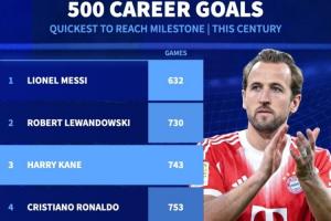 全文摘要:拜仁前锋凯恩在德甲比赛中梅开二度,达成个人职业生涯500球里程碑。据统计,他是21世纪达成此成就的第3快球员,仅用743场,仅次于梅西和莱万,领先C罗。