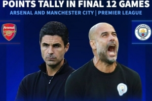 德转也盘点了阿森纳、曼城在此前4个赛季最后12轮积分情况,具体如下: