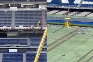 皇马已正式批准在球场三层看台安装全新的LED电子环屏,目前相关施工已经开始。本周,工程人员已着手拆除球场西侧三层看台的结构面板,这是整个安装工程的第一步,预计全部工程将耗时数月。