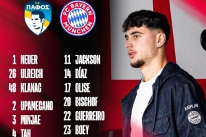 全文摘要:拜仁官方公布了欧冠客战帕福斯的大名单。凯恩领衔锋线,格雷罗、比朔夫等球员在列。门将为诺伊尔、乌尔赖希和克拉纳克,后防包括金玟哉、于帕梅卡诺等。中场由基米希领衔,格纳布里、杰克逊等组成攻击线。