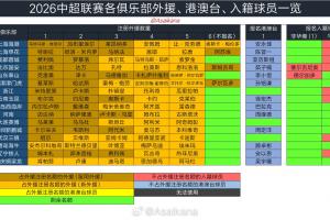 体育资讯02月28日讯 今日0点,中超冬季转会窗口关闭。德转中国区管理员朱艺对中超16队的外援、港澳台和入籍球员进行了汇总整理。
