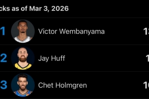 全文摘要:马刺131-91大胜76人,文班亚马统治攻防。他三节高效拿下10分8篮板4助攻3抢断6盖帽,正负值高达+41。赛季至今,他仅用47场便送出138次盖帽,领跑全联盟,刷新纪录。
