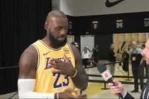 采访詹姆斯的记者Dave McMenamin向詹姆斯展示了一张自己今夏在赞比亚旅游期间,从一条郊外小路上拍摄的照片,他偶遇一个男人身穿由詹姆斯多款球衣拼接而成的23号詹姆斯球衣。