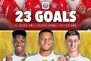全文摘要:Score90盘点五大联赛球队三人组进球数:拜仁三将凯恩、迪亚斯、奥利塞共进23球居首;皇马姆巴佩等三人进16球;法兰克福乌尊等三人进14球;曼城哈兰德等三人进12球;巴萨莱万等三人进11球;马竞阿尔瓦雷斯等三人进10球。