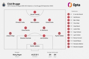体育资讯10月1日讯 欧冠联赛阶段第2轮比赛,布鲁日前往客场挑战亚特兰大。本场比赛,布鲁日首发平均年龄仅为24岁24天,这创下了欧冠历史首发平均年龄最年轻纪录。