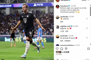 赛后凯恩也在个人社媒晒出庆祝进球照片,配文写道:“精彩的夜晚,球队势头不错,让我们继续延续下去!”