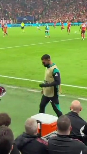 当利物浦控球时,现场55000加拉塔萨雷球迷爆发出巨大嘘声,萨拉赫被拍到被嘘声惊扰,甚至捂住耳朵的画面。