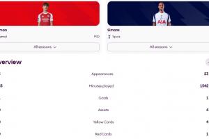 道曼本赛季只用了43分钟便打进英超首球,热刺新援哈维·西蒙斯也只有一个英超进球,但他已踢了23场出战1542分钟。