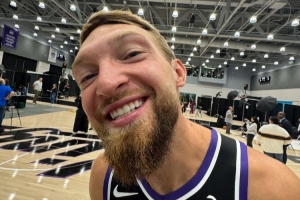 其中,小萨博尼斯和德罗赞满脸笑意,拉文与新援施罗德镜头前一脸严肃。