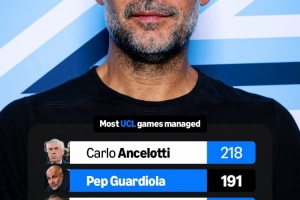体育资讯3月18日讯 今天对阵皇马,瓜迪奥拉将迎来执教生涯第191场欧冠,将超越弗格森成为历史第二。