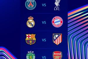 全文摘要:欧冠1/4决赛对阵及赛程出炉。首回合于4月8日、9日凌晨开打,皇马对拜仁、阿森纳对葡体同场竞技,巴黎战利物浦,巴萨对阵马竞。次回合于4月15日、16日凌晨进行,对阵双方互换主场。