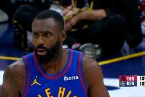 GIF-哈达威右侧弧顶三分再中 掘金反超3分