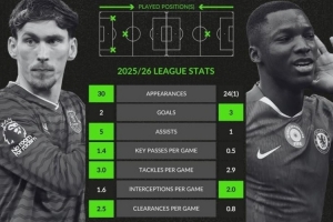 全文摘要:英超埃弗顿3-0胜切尔西后,WhoScored对比了中场詹姆斯·加纳与凯塞多的联赛数据。加纳出场30次,送出5次助攻和2球,场均关键传球1.4次,解围2.5次,数据全面占优;凯塞多仅1次助攻,关键传球和解围数较少。