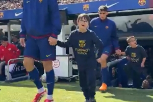 全文摘要:3月22日西甲赛前,巴萨球员手牵唐氏综合症球童入场,以纪念国际唐氏综合症日。此举旨在提高公众对智力障碍人士的认识,并向他们表达关爱与支持。